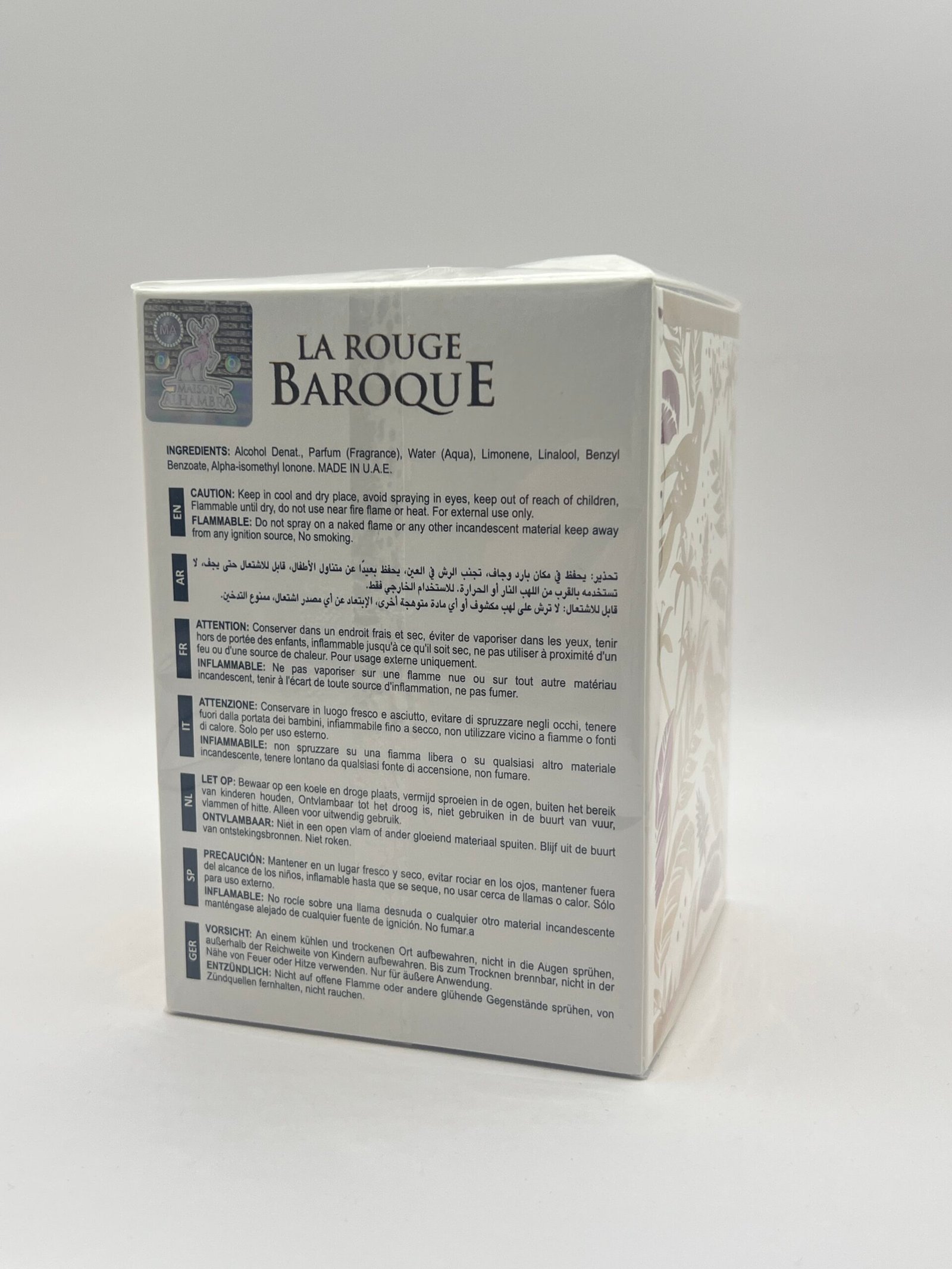 Più che un’imitazione, Maison Alhambra La Rouge Baroque è una fragranza in grado di stare in piedi da sola e di dare a chi la indossa un senso di esclusività e raffinatezza. Pur ispirandosi alla leggendaria fragranza Rouge 540 di Baccarat, offre una propria interpretazione unica che sicuramente piacerà agli amanti dei profumi di lusso.